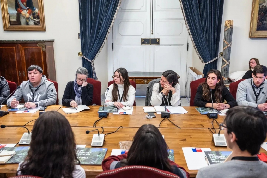 Los estudiantes maipucinos, Daniela Aburto y Samuel Arvelo, de la escuela Las Américas, son parte del Consejo de Niños, Niñas y Adolescentes (CNNA) del Ministerio de Ciencia, Tecnología, Conocimiento e Innovación, cuya primera sesión se realizó en el Palacio de la Moneda contando con la participación de la ministra de esa cartera, Aisén Etcheverry Escudero, entre otras autoridades.